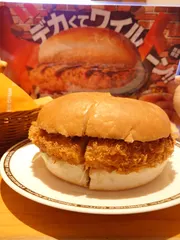 NEW ワイルドーン 逆見本詐欺でお馴染みのコメダ珈琲さんが自らドデカと謳ったとネットでも話題のドデカメンチカツバーガーを頂きに😀 先ずはモーニングでお腹を慣らしこの後の準備!初めてコーンスープ頼みましたが、素材の味を生かして甘さ抑えめな印象。このコーンスープはコメダ珈琲さんでしか頂けないですね🙆 目