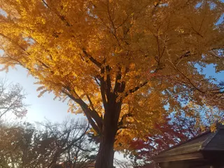 【幸せエピソード】さんかく屋根の上に紅葉🍁お天気がよく、暖かいのは昨日くらいまでと聞いて、珍しく、そして久しぶりに(一部の人は初めて)家族みんなで近くの公園に散歩に出かけました✨たぶんこの活動は、代々続くものと思われます💛