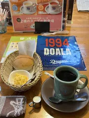 モーニングと本 続きを読みたい本を持ってコメダへ——表紙をゆっくり鑑賞する時間のため、何か追加をと思いました。気分はヨーグルトでした。はちみつたっぷりで幸せでした。緊張が解けて調子が出たのか、気がついたら、食べ終えたあと本文にすっかり熱中していました。少し疲れて、甘いものを追加したくなりました。コーヒーは幸いまだあ