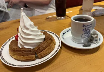 綺麗な巻 シロノワール🤍食べる時はブレンド☕️が好き❤️ ソフトの巻が綺麗すぎて、崩すのもったいなーい!