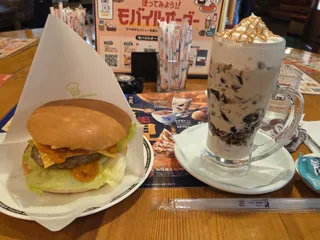 今日の1枚、月見ランチ。 昨日の朝はモーニングと月見シロノワールミニ。 ランチは月見フルムーンバーガーと月見ジェリコ。