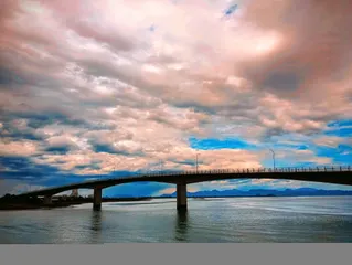 向かいたかった場所 こんにちは こちらも 先ほど投稿したのに 消えてしまって 再投稿しました 昨晩も 深夜2時間半 雷雨 昨夕 好きな橋とピンクの雲