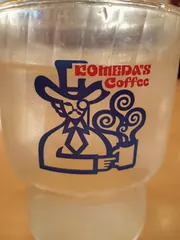 ですね😊 コメダに着いて座席に座って このグラスとおしぼりを店員さんが テーブルに持ってきてくれて 青いコメダおじさんを見ると ほっとひと息つけます☕🍞🌄