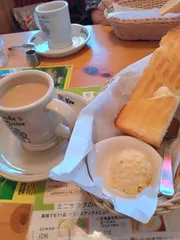 本日のモーニングです いつもは小倉あんですが今日は気分を変えてタマゴペーストを選択しましたトースト少しよく焼きの注文忘れてノーマルです