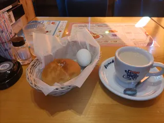 皆さん🐔おはようございます 滅多に無いチャンス❕一番乗りしにベイエリア店に来ました⚓ 昨夜じょっぴんかったドアが再びカシャンと開きました。 他の方が来ないうちにフォトタイム📷後日投稿しますね。 モーニングはミルクコーヒーと何時もの様にローブパン🥚は持ち帰り。 色々撮ってるうちにミルクコーヒー膜張りま