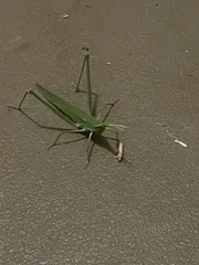 仕事から帰宅すると、玄関前にじっとしていたバッタ🦗さんに遭遇しました♪ 意外に大きいので、思わず撮影しました♪