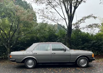 目印であり続ける遺産、桜の葉を受け(メルセデス・ベンツ 280E)