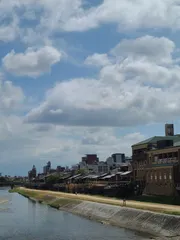 鴨川沿いに見える川床川床といえば夏を感じますね