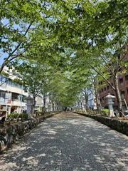 木陰のありがたさ 管理が大変と伺いますが、夏を感じるこの季節は大変ありがたく。伐採してもまた植えていただきたいところ。