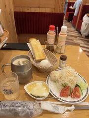 HIRO さん、こんばんは😃。 仕事が終わってコメダ珈琲店に来ました😄💕。 HIRO さんのミニサラダ🥗がとっても美味しそうだったので、早速私もいつもの定番モーニング❣️ 見た目も美しい🥒🍅トッキントッキンには遠く及ばないワイルドなミニサラダ🥗でしたが、懐かしい味わいで感動しました〜😍❣️❣️❣️