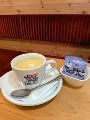 溶けてしまった 久しぶりにコーヒージェリーを頼みました。 話しに夢中になりソフトクリームが溶けてました😭。 これはこれで美味しい。