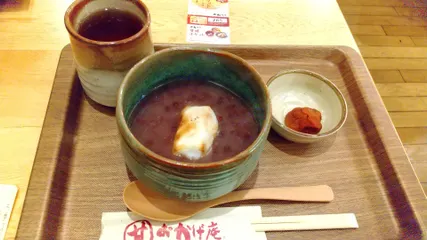 おかげ庵葵店福袋の甘味チケット 甘味チケット三月末まで。桜満開なのに花冷えの一日。ぜんざいにしました。梅干し合うんですね👍 おかげ庵はやっぱりお茶です!本店や関東はお水なんですよね😅葵店のみお茶だそうです。「お客様の声」で書いてます。お茶は手間がかかるとは思いますが、和のおかげ庵さんは、是非お茶でお願いしたいです。&nb