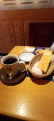 今朝の定番モーニング やらかしましたー😅😅😅浸しパンで食べるつもりで“軽やきトースト”を注文したのですが、何とアイスコーヒーを頼んでいたの❗️コレは浸せないわぁ🥲気を取り直し、味なしトースト囓ります😉