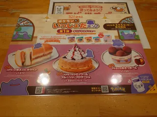 コメ友の皆さん こんばんはショッピング途中のオヤツタイム小腹が空いた時のミニたまごペーストサンドそして始まりました ポケモンシリーズコラボメタモンのシロノワール ブルーベリーフロマージュ酸味の味にソフトクリームの甘味がマッチしてとても良い出来に満足してました😋付属のメタモンとフシギダネ豆菓子風