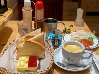 タダさん、こんばんは😃。 図書館は逃げないので時間に余裕のある時でも良さそうなのですが、思い立つと行きたくなる性分なので軽くモーニングをいただいて出掛けて来ました❣️ こういう時は一番好きな席じゃ無い方が未練が残らなくて良かったのになぁ…って思いました😅💦 ミニサラダ🥗が無いだけなのにテーブルの上が