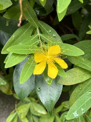 庭の歳時記 両親が今の家に越してきて最初に植えた花木の一つ、未央柳(ビヨウヤナギ)です。毎年五月頃から咲き始め、梅雨時の庭を彩ります。鮮やかな黄色い花からいつも元気😀をもらっています。花の時期はそろそろ終わり。これからは夏の花に移り変わります🥰。