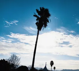 見えますか? おはようございます 逆行で 撮ったらヤシも こんな 暗いシルエットになるんですね like a dog with two tails