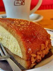 新作ケーキが発売されてから連日売切のごちそうカスタード4日目にしてやっと〜😆表面のスポンジにかかっているカラメルがツヤッツヤ✨️少しほろ苦いカラメルが中の甘いカスタードと合わさって、いい感じでペロッと食べてしまいました😋新作ケーキ食べたい順が①ごちそうカスタード②ごまいもんぶらん③アプリコットショコ