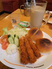 タダさん こんばんは♪♪♪ タダさんのスペシャルランチですね^_^ 今日は全部「コ系」ですね^_^ ゴジラ、コング、コメダ、コーンスープ、コケカッコーバーガー🐔😃😅 明日も良い1日を過ごしてくださいね☕️