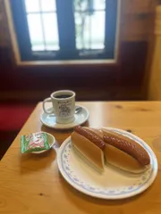 今日のランチはホットドッグ♪ 切りこみの美しいこと🌭✨✨✨マスタードとマヨネーズ抜いていただいてます🤎とても美味しかったです