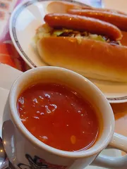 ミネストローネと 具沢山のミネストローネとたっぷりコールスローのホットドッグで休憩でした。今日はまだ寒いので熱々のミネストローネが身体に沁み入りました♪