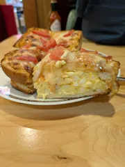 1人何役? 久し振りにたっぷりたまごのピザトーストを注文しました😋チーズの伸び具合🤭ペロッとめくると大好きなたまごペーストがまさにたっぷり隠れておりました😜そのまま食べても、上のピザ部分とたまごペースト部分を分けて食べても🙆 何度でも楽しめるメニュー✌️お腹いっぱい大満足です😝 この後は、し