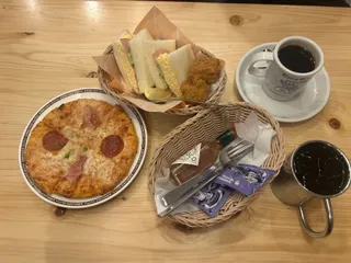 メニュー名:コーンスープ+モーニングおすすめ度:★★★★★/5個中5 11月30日までくつろぎアプリクーポンが使えたので...モーニングでやってみたかったパン2種食べ比べを決行!おかわりパンが100円引きに!太っ腹〜☺️ しっかり冬っぽく寒くなったからこそ、ホカホカのコーンスープ