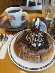 シロノワール、早速食べに来ました😋♪ソフトにかかったチョコはパリパリ、ショコラクッキーはザクザク。前回より何だかパワーアップしてる…! お昼に軽めにと思ったたまごサンド、パン大きくなってませんか?笑