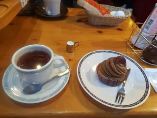 モーニング&デザートセット✨ ①棚の高さチェック✅️②🐻ちゃんと📸③ミニサラダ追加🥗④🫖&🌰⑤断面✨⑥ミルクティー🥛⑦Noritake様〜🙏コメダ珈琲店様☕今年もありがとうございました🙇