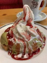 シロノワールって食べ方がとても難しい…抹茶とコラボこの後、クルミっ子が登場。そして、クルミっ子と同日に限定でピスタチオ。クルミっ子は関東で限定。ピスタチオは、それ以外のお店で提供。念願叶って食べに来て正解でした。勤めていた時に旅行という事で御殿場のアウトレットに行ったり、ビールの会社のレストランに行
