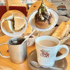 帰ってきたカフェインマンさん、こんにちは😃 ☕️モーニング🥚🟡🥯🥗美味しそうだぎゃー🤤✨ 癒し空間で大満足完璧👍
