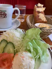 土曜モーニング☕️🍞🥗 おはようございます🐱快晴☀️寒い❄️ 昨日の胃カメラの影響か、胃の具合がイマイチ🥲でも不思議とコメダでは食欲が出るのです🙂 みなさま、今日もご安全に、素敵な一日をお過ごしくださいね😊