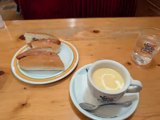 コーンスープ はじめましてでした。とっても濃厚でクリーミーで塩が強すぎず美味しかったです!