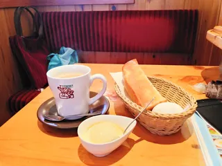 お久しぶりで… やっとコメダに行く機会が出来ました♪今日は…お昼が14時過ぎになってしまい、お腹ぺこぺこだったのでコーンスープの他にコメチキとミニサラダでランチにしました🍋それから…初めてのレタス巻き☺️美味し〜ぃ🫶追加であったかくなってきたので、アイスコーヒーにコストコの会員カードの提示でサービスのミニソフトクリ