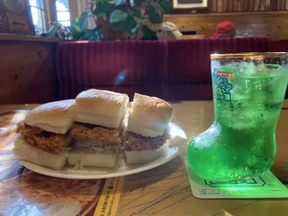 カツカリーパンとメロンソーダ 熱々サクサクのカツカリーパンと、シュワっと爽やかメロンソーダ✨とっても美味しかったです😋