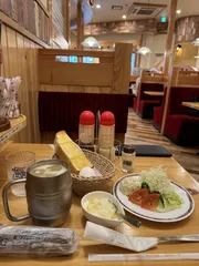 お疲れ様モーニング バナナジャムが気になってて、ようやくありつけました!!優しい甘さで定番メニューになって欲しいです。ドリンクは氷なしのアイスカフェインレスコーヒーです。 お得なチケット販売中ですが、使用期間が意外と短いので悩んだ末、今回は見送り。店舗毎に価格が違うので難しいとは思いますが、全店舗で使えたら!