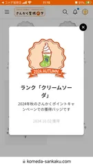 私もバッジいただきましたぁ さんかく屋根のポイントで頂けたそうで、とても嬉しいです❣️コメダさん、ありがとうございました🙇♀️