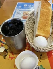 定番のいつものモーニング いいですね なんとゆで卵2個なんですね〜 私も真似しようかな? お時間をお楽しみくださいね〜
