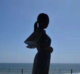 立ちつくす 人のシルエットを中央に置くことで、空との色彩感の対比や夏の世界観を強調させました。