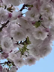 ちょっと強風でしたが、花びら散らすことなく美しく咲いてました❗️染井吉野と交互に植えてあり、染井吉野はハラハラ散り始めてました!