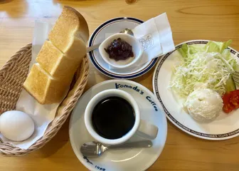 メニュー名:モーニングトーストアレンジおすすめ度:★★★★★/5個中満腹度:★★★★★/5個中コメント:一度やってみたかったモーニング♪題してもりもりわんぱくサンド🌟ミニサラダを頼み、タマゴペーストと共にもりもりサンド♡すごーく満腹!!