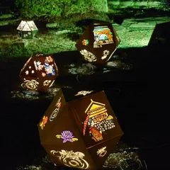 夏のお盆時期に飾られる倉敷の切子ちょうちん 浮かび上がる和のあかりがきれいでした