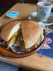 帰ってきたカフェインマンさん、こんにちは😃 久しぶりに平日のランチに伺う事ができて、ラッキー✌️でした❗️ サンドイッチが具沢山なのでフォーク必須です。
