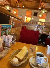 たまきさん、おはようございます😃 親子でモーニング☕️🟡🍞☕️🫘🍞美味しそうだぎゃー🤤✨ お母様のモーニングデビュー✨完璧👍