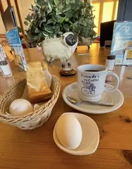 今朝の定番モーニング🙂 ここで待ち合わせて商談の予定です。ささっとトーストと玉子食べてしれーと待ちます😛時間ないし💦💦もうすぐ10時だわ😅