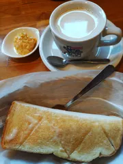 今朝の定番モーニング😊 “ブレンド浸パン”で食べるから トーストは薄焼き・バター無しで 注文し、ブレンドはお砂糖入れて 甘めにしました☺️ パン屑溢さず食べました😋😋