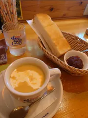 楽しみにしていた休日のモーニング☕✨️今朝は、③番コーンスープ🌽モーニングからのデザートにしようと思ったのですが⑥番カフェオーレ☕️モーニングで久々のWモーニング☕✨️カウンター席の端っこだったので正面、全面🪟とはいきませんでしたがコレもまたイイです😌✨️ もう少しゆっくりするはずが用事が