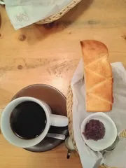 定番のモーニング、これですよね😄 このトースト、めっちゃ美味しそうです。 バターがいい感じ🤩