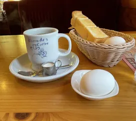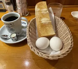 今朝の定番モーニング😌 今朝も定番モーニング🙂ここの店舗、来始めた頃はモーニングAセットに追加玉子🥚を注文すると『 Aには玉子付きますけど?』と言われていたのに、今は当たり前に追加が先出しに😊玉子好きなお客サマが多いのが浸透してきたのかも😊😊