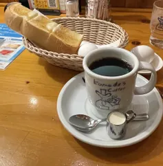 今朝も定番モーニング🙂ここの店舗、来始めた頃はモーニングAセットに追加玉子🥚を注文すると『 Aには玉子付きますけど?』と言われていたのに、今は当たり前に追加が先出しに😊玉子好きなお客サマが多いのが浸透してきたのかも😊😊